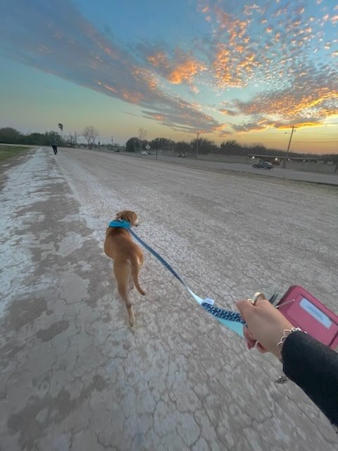 She was willing to take the time to let him come around. What took him months to accomplish in the shelter has taken no time at all to accomplish in a home! He’s now the master of walks and is loving his new life.