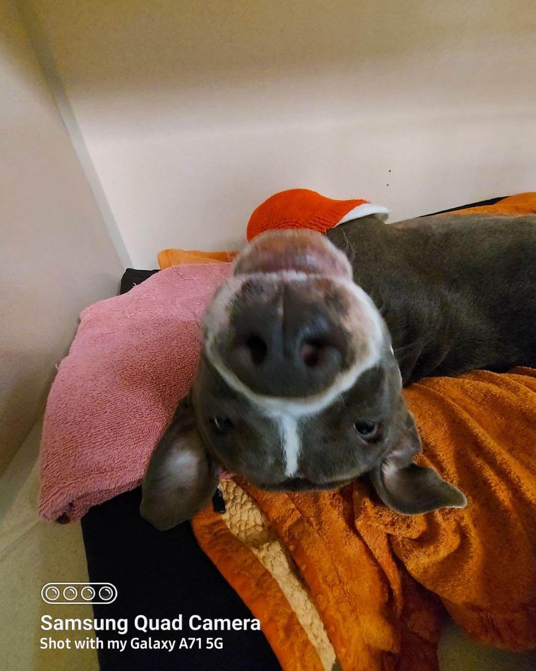“They say she is very happy to see anyone who comes over to her and wags her tail and rolls over for belly scratches. Please continue to send her all the prayers and positive vibes.”