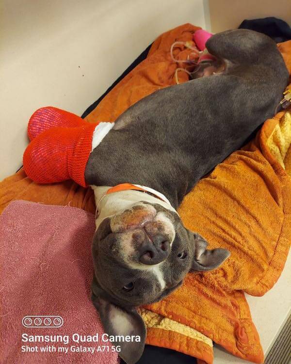 Athena’s radiographs showed she still has both elbows which means she has a higher chance of adjusting to prosthetics. Surgeons will salvage what they can of the dog’s front legs. Her wounds have since been debrided, and her left leg is her longer limb and looks to be in fair condition. Dead tissue was removed, and some of the contaminated bone was removed.