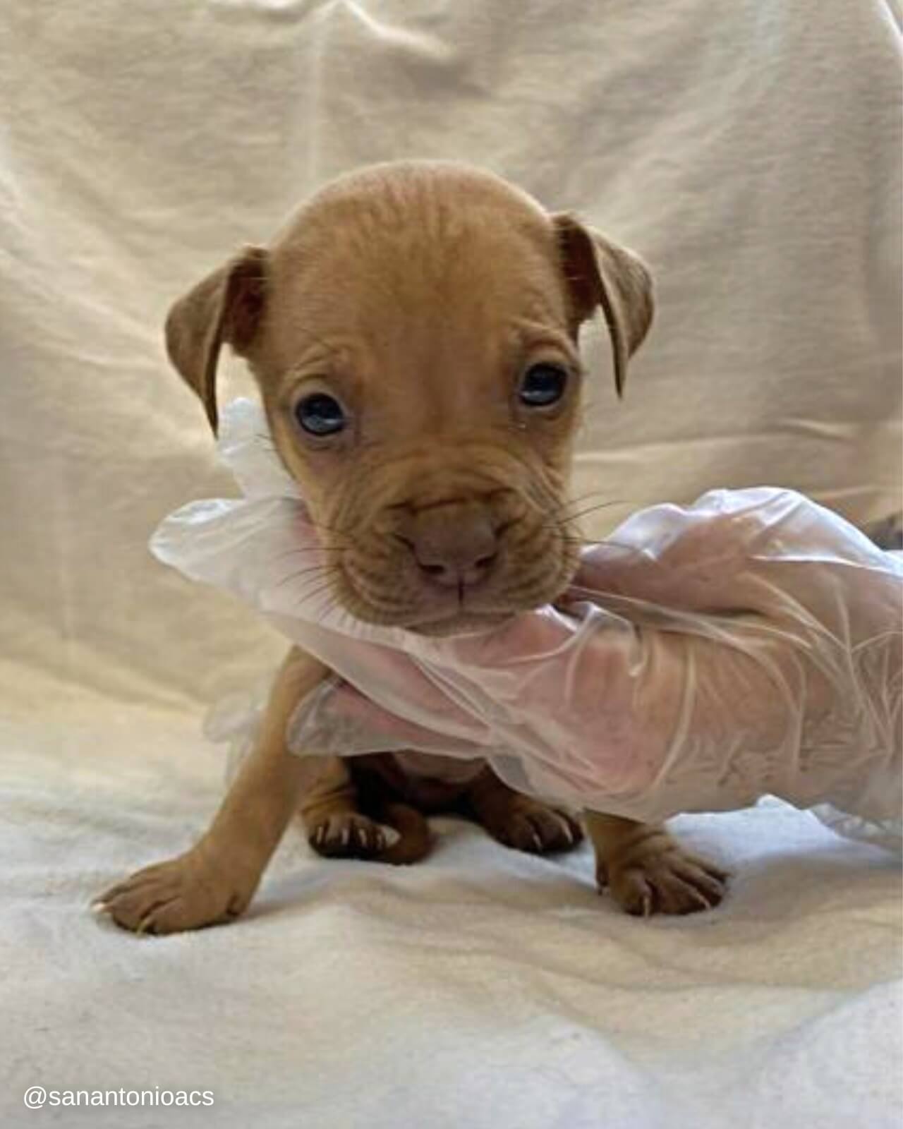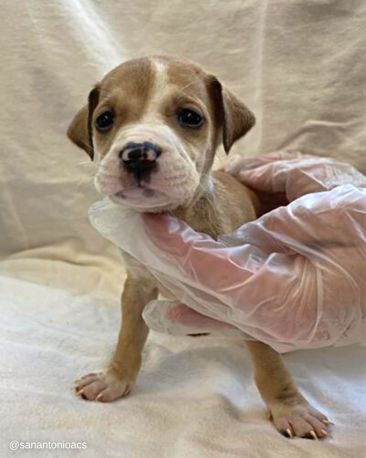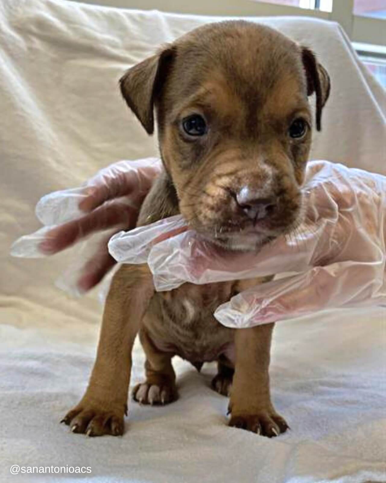 Just one week ago, the staff at the City of San Antonio Animal Care Services arrived at the shelter in the morning to find a large cardboard box sitting in front of the door. The box had been taped closed, but slight whimpers coming from inside could be heard. A staff member carefully opened the box and found 11 puppies gasping for air. The weather outdoors had already been stifling – even in the early morning hours.