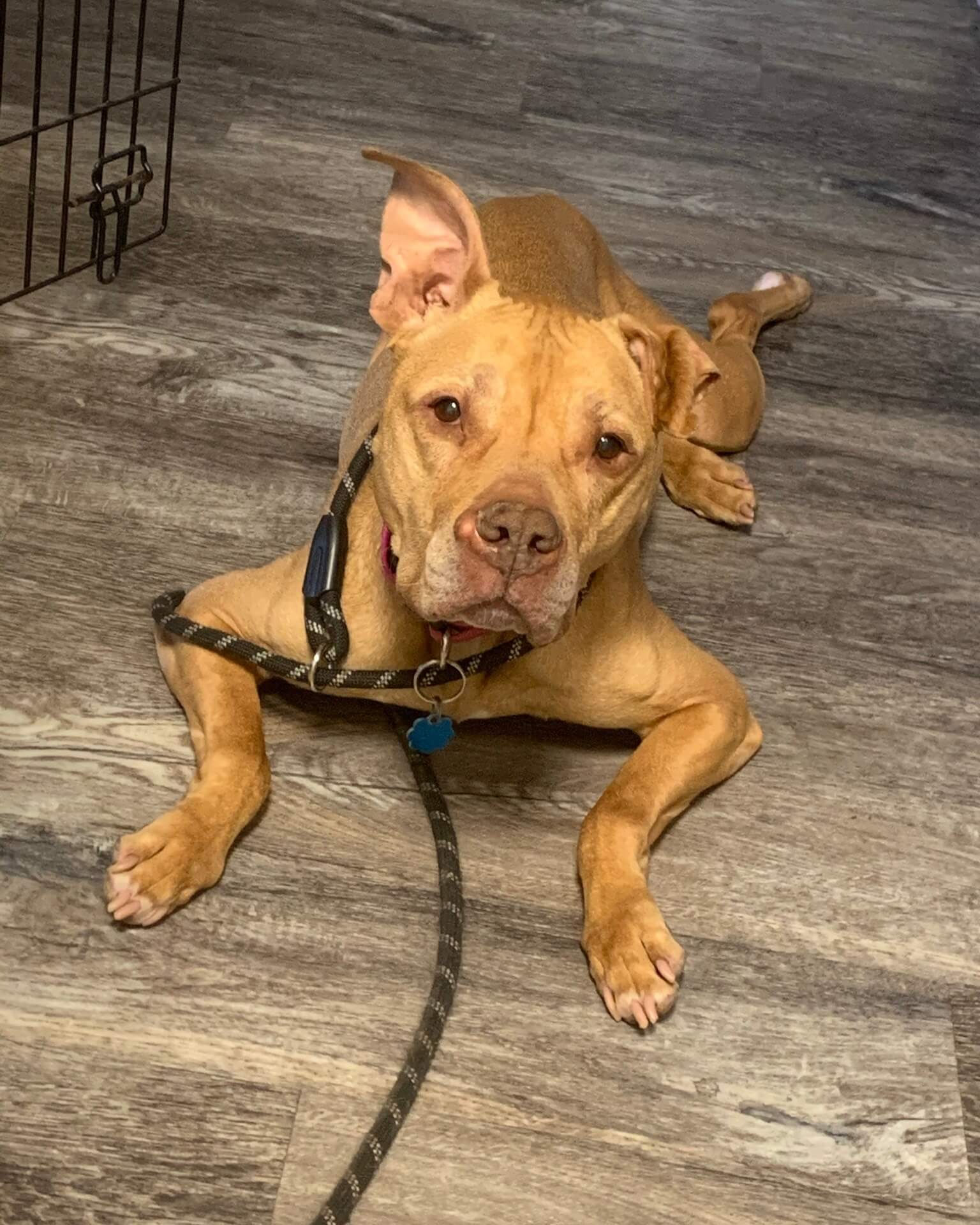 Piper is the sweetest girl who just wants to be in your company! She loves to lay next to you on the couch and soak up your attention. She greets everyone she meets with a wagging tail and smile on her wrinkly face! Piper is quiet and affectionate. While Piper may be a golden girl, she still loves to play tug-of-war and spend time outside
