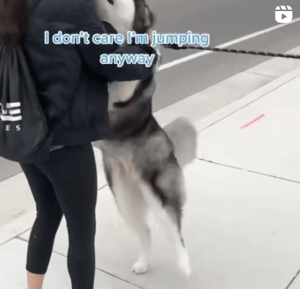 The video shows Haru walking past his grandma, but seconds later, it all registers, and Haru turns around to greet her with lots of jumps and kisses.
