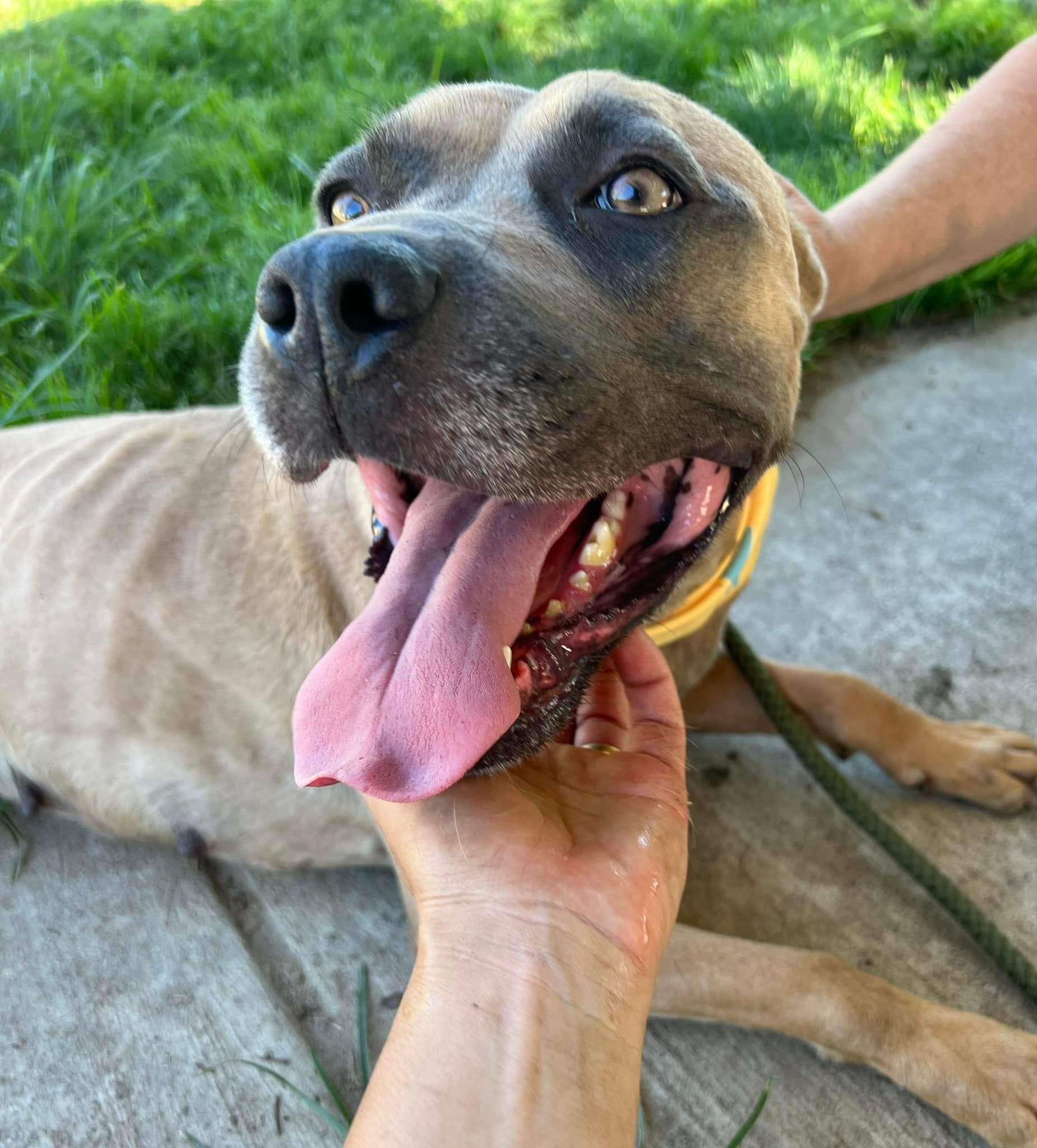 Naomi is sweet and affectionate and “smart as hell who deserves out of that shelter.” When she first entered into the shelter, she was very dog reactive, but now appears to just get over excited or maybe she’s just dog selective? She did fine with a younger, quiet female dog when they met. Many dogs have initially been dog reactive for weeks in the shelter, and then they calm down as their real personalities begin to emerge.