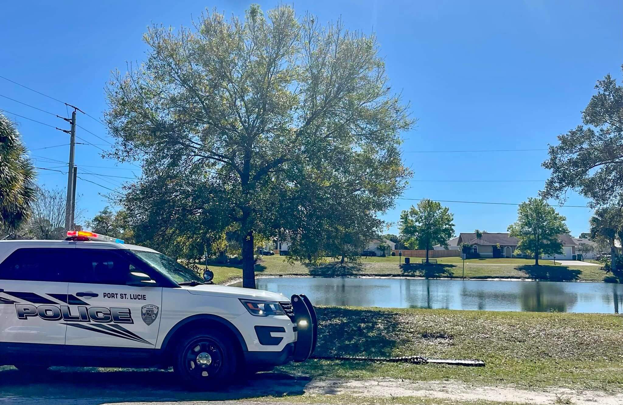The bystanders rushed over to the lake and flagged down PSLPD Officer Doty who was driving on Airoso Blvd.