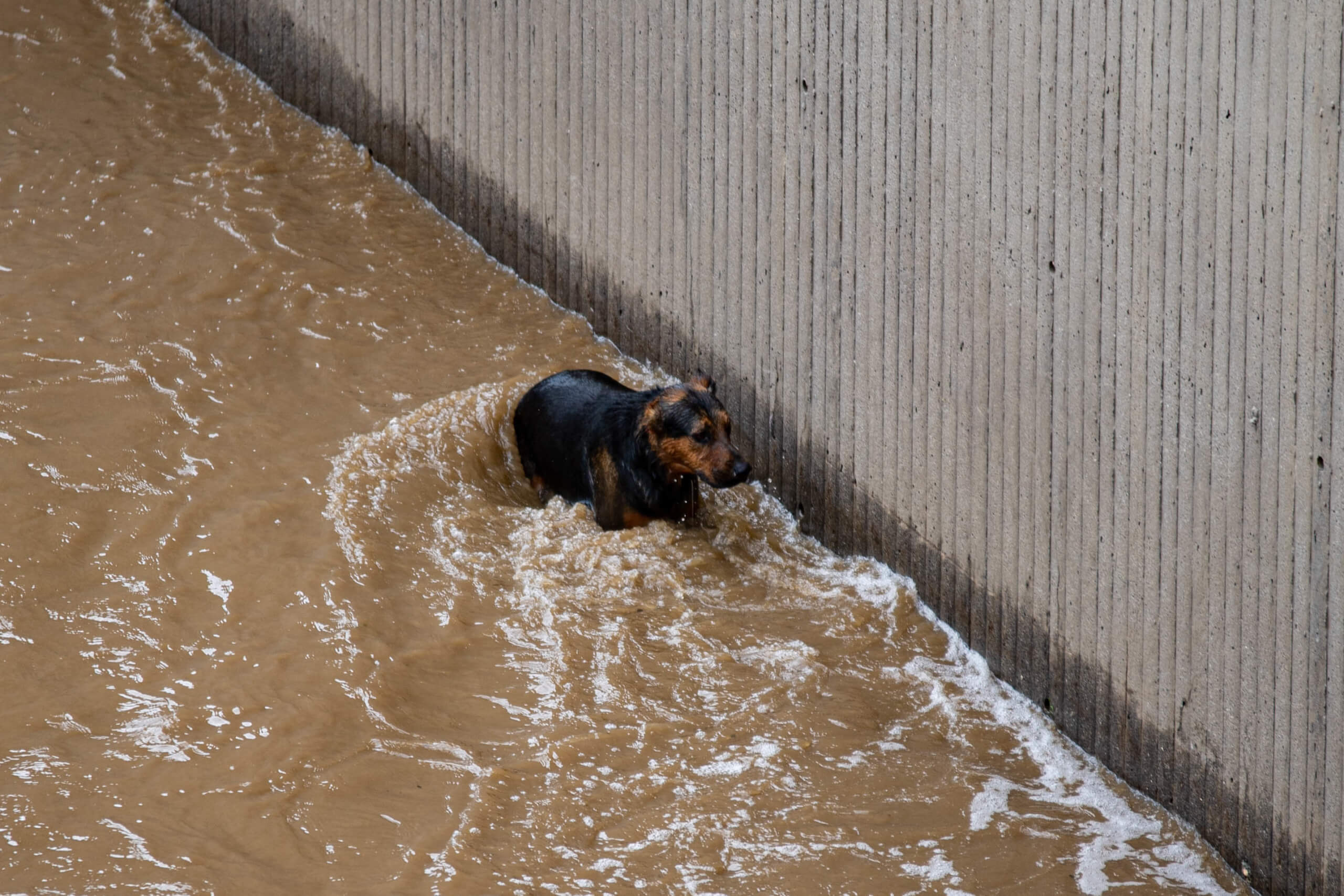According to the press release from the Los Angeles Fire Department, a heavy downpour quickly transformed the river bed from dry concrete into a swift moving river, putting the lives of anyone trapped within it at risk. The woman, 35, was rescued within 30 minutes, but Scooby remained in the water.