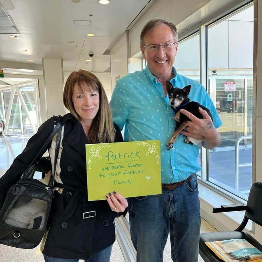 Through social media and the rescue organization’s contacts, a couple from Baltimore fell in love with Patrick and offered him a “furever” home, but the challenge was getting him there. That’s when Jonathan, one of the flight attendants for Southwest Airlines, stepped in to help. Jonathan used his time and flight benefits to fly Patrick from DAL to BWI and help unite him with his new family.