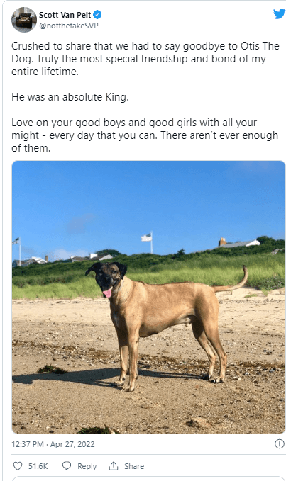 Otis had been a great dog, and Scott wanted everyone to know how much he had meant to the entire family. He described how Otis would always come running to him when he returned home, and how just the wagging of Otis’ tail would make him feel so great. And now that Otis has passed away, it’s that cheerful feeling Scott would get enjoying his dog’s companionship, that he would miss the most.