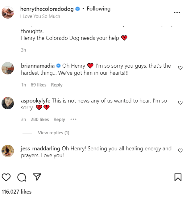 Henry’s fans are devastated with the news, and sending the beloved dog their best wishes:
