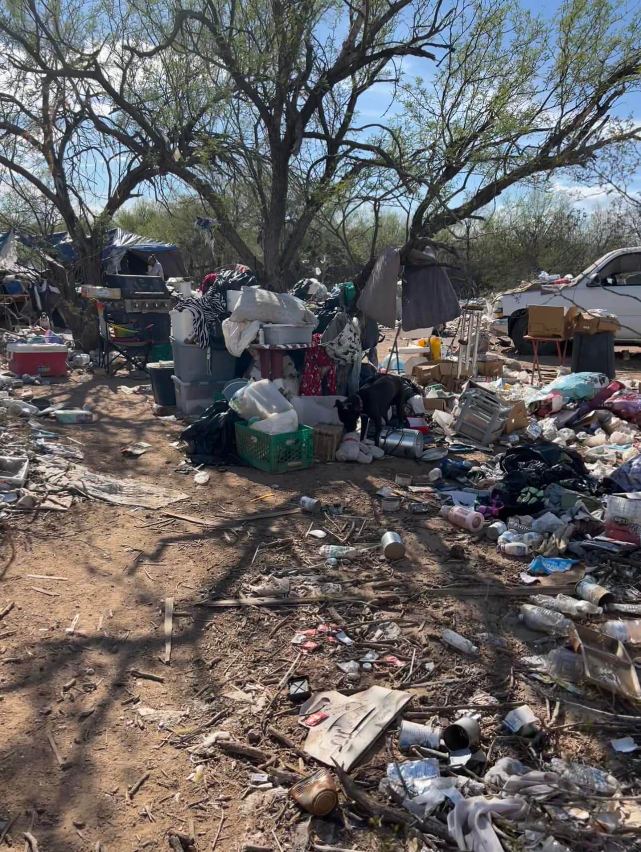 In Surprise, Arizona, amid a campground full of tossed away furniture, blankets, cages and trash, almost 150 dogs and cats had been living in cages and handmade kennels. The hoarding situation was discovered just last week when the owners of the animals, who had been living in the extreme heat of the desert, were ordered to leave.