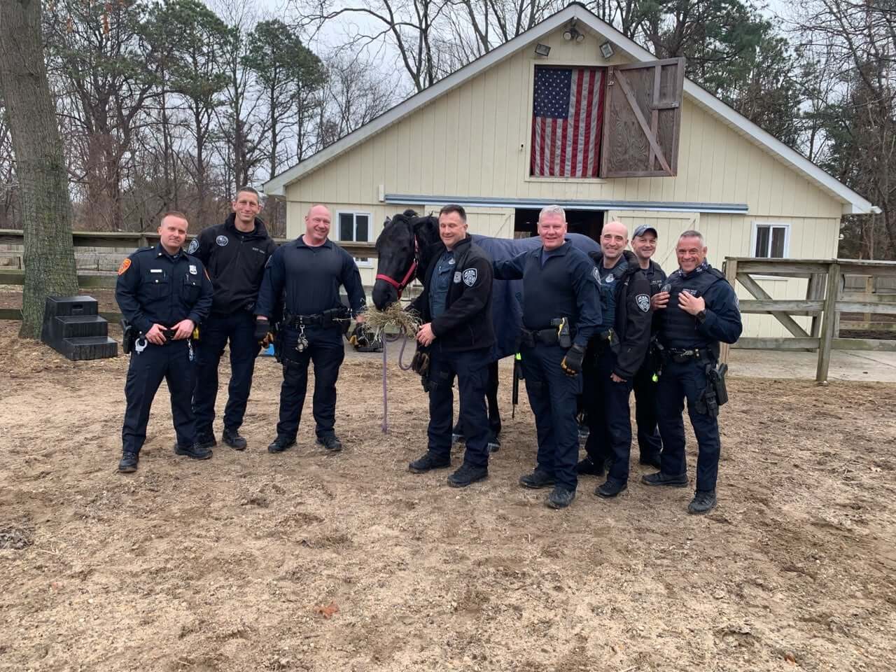 The horse named Penny, is a three-year-old mare and luckily was not injured. She lives at the residence. The filly took a photo with her rescuers.