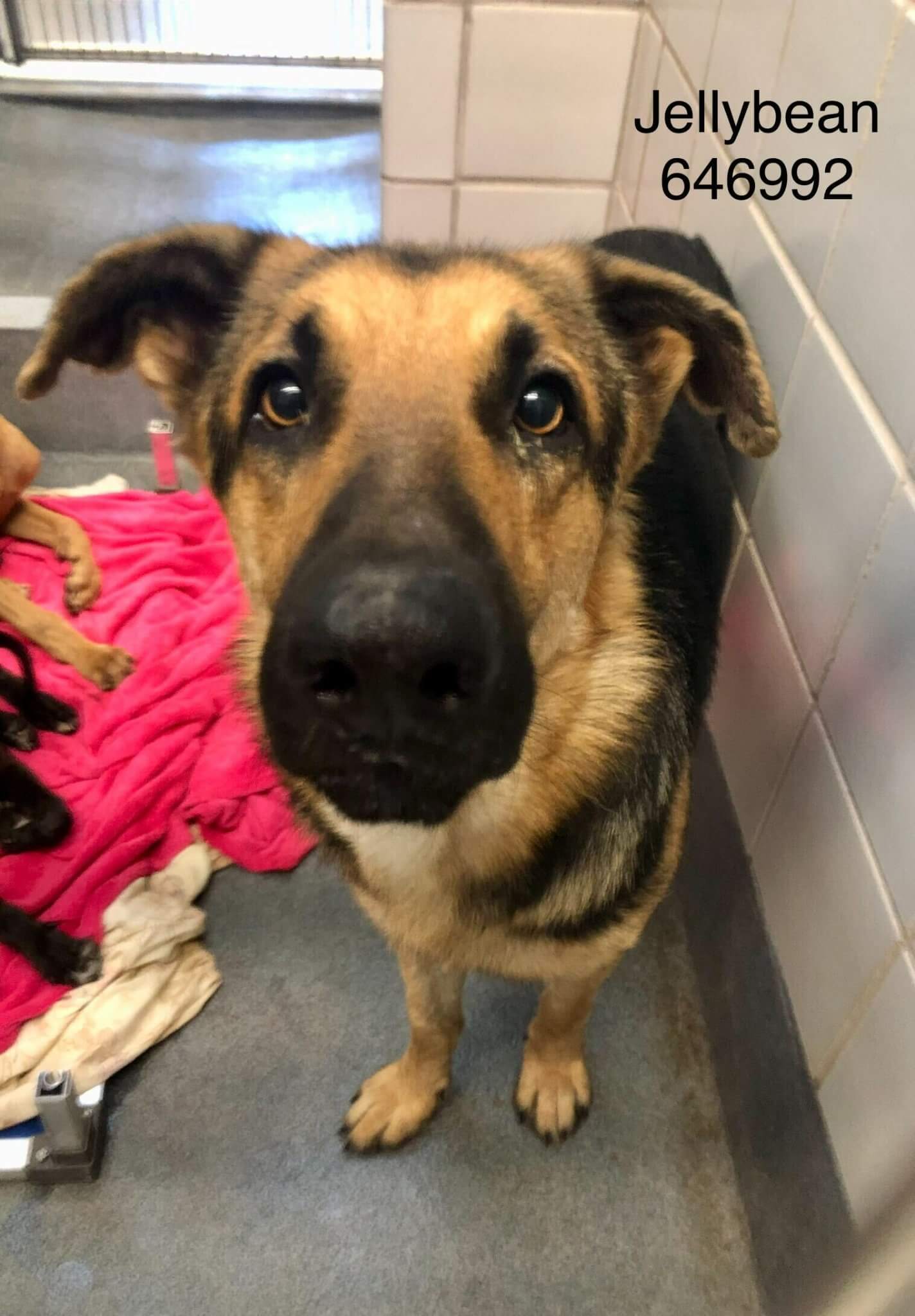German shepherds make excellent companions to people who love intelligent, emotional, faithful pets. Please share Jellybean’s adoption information to help him find the lifeline that he so desperately needs.