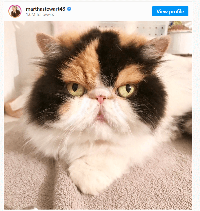On Sunday, Martha Stewart announced the death of her senior cat, Princess Peony, who was killed by Stewart’s dogs. The announcement was made via Instagram in a rather odd post that read: