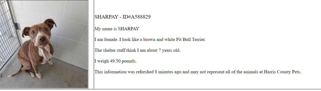 Harris County Pets at (281) 999-3191
