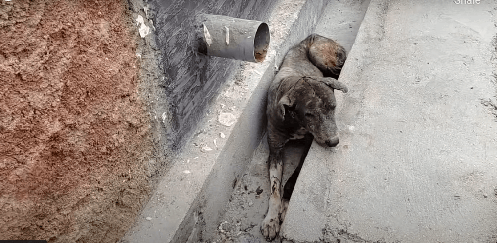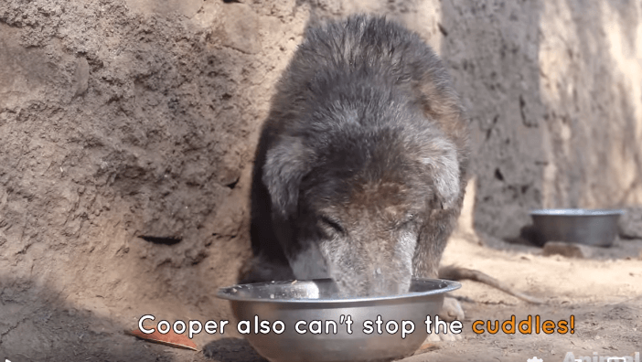 Next came Cooper. He was found lying in a drain with a severe ear infection and covered in mange. His rescuers arrived in the nick of time. Cooper had just been waiting to die.