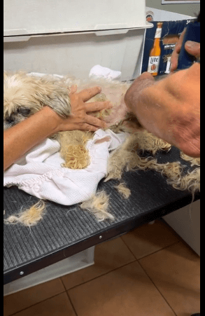 Daisy arrived at the organization’s partner veterinary hospital where she is being shaved down and then will be bathed and examined.