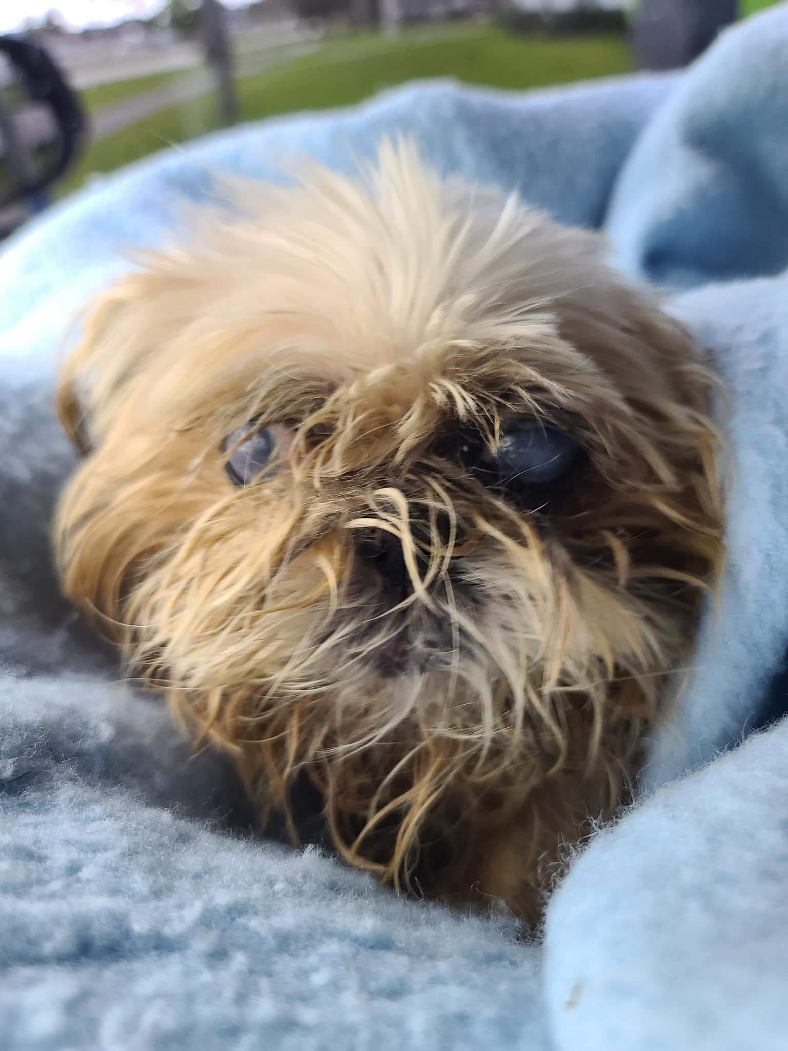 Daisy’s condition is heartbreaking by any definition. She can barely see – if at all and will need to be seen by an ophthalmologist as soon as possible. She was not bathed or groomed at the shelter, and her smelly coat was matted with feces, urine and vomit.
