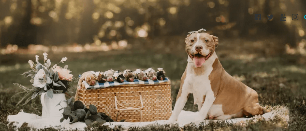 Not long after the photo shoot, Pickles gave birth to eight healthy puppies. Of course, it had to follow that the babies had a photo shoot – this time out of their mom’s belly, and none prouder than Mama Pickles was right there showing off her gang of adorable ones.