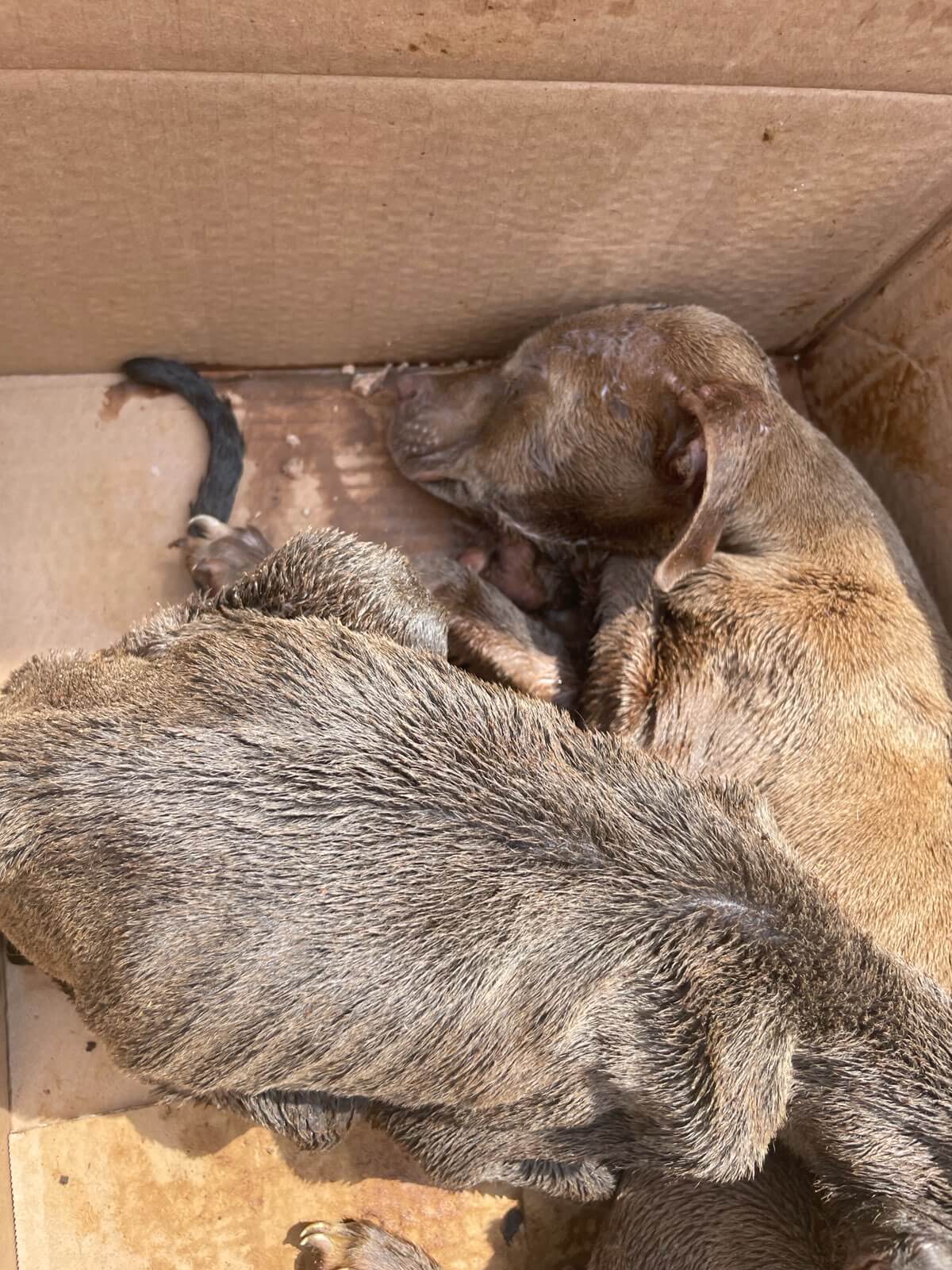 Someone put two puppies into a cardboard box and abandoned them in a dumpster in Philadelphia, Pennsylvania. One puppy, who had a possible skull fracture, was turned over to a Penn Vet Shelter program for specialty care and the other remained with the Pennsylvania SPCA (PSPCA) where she is told daily that she is “not trash.”