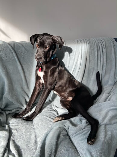 Rambo is crate trained and stays comfortably in a crate overnight. He is extremely cuddly and loves to go for walks and playtime. He needs training for his apparent lack of manners, as he was barely socialized with other dogs and strangers. He is smart however, and loves learning.
