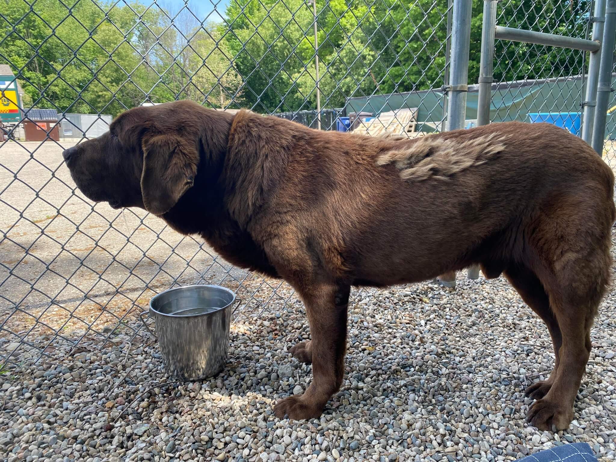 “Gentle Ben” as he has been named was found in the morning as the staff arrived. At the very least, if this person had looked around a little bit more, he could have put the dog in covered outside run. He has been given a bath, had a visit with the veterinarian and is receiving lots of love and attention.
