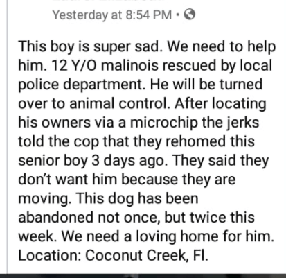 In Coconut Creek, Florida, the owner of a 12-year-old Belgian Malinois was rescued by officers from the Coconut Creek Police Department. A heartbreaking excuse prompted an emergency plea for help. The dog’s name is Jacko.