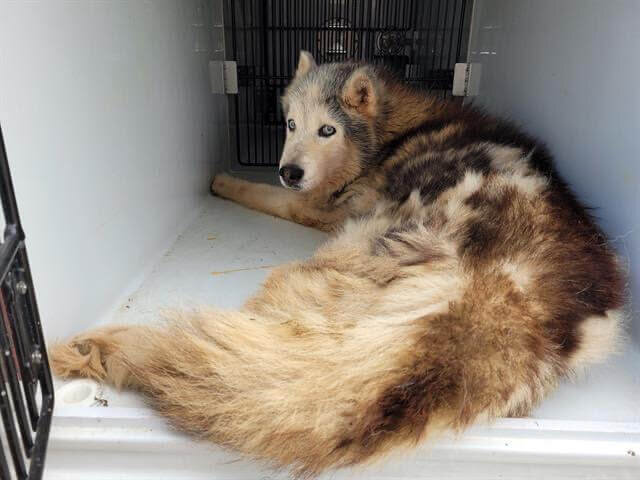 An 11-year-old Siberian husky had been picked up on April 28, 2022 as a stray from zip code area 77073. When officers arrived, the dog was not able to stand, and he was taken to Harris County Shelter in Texas.