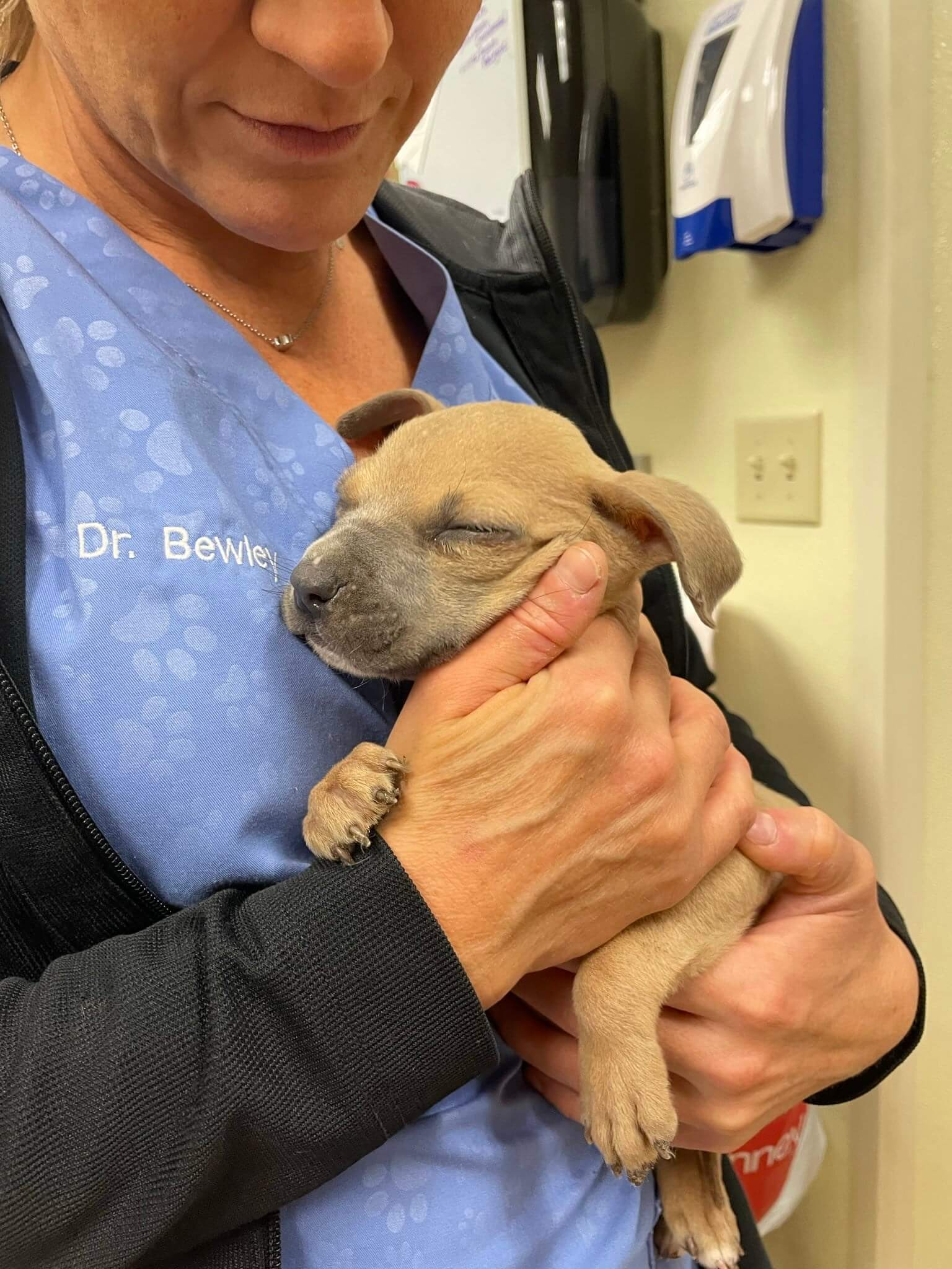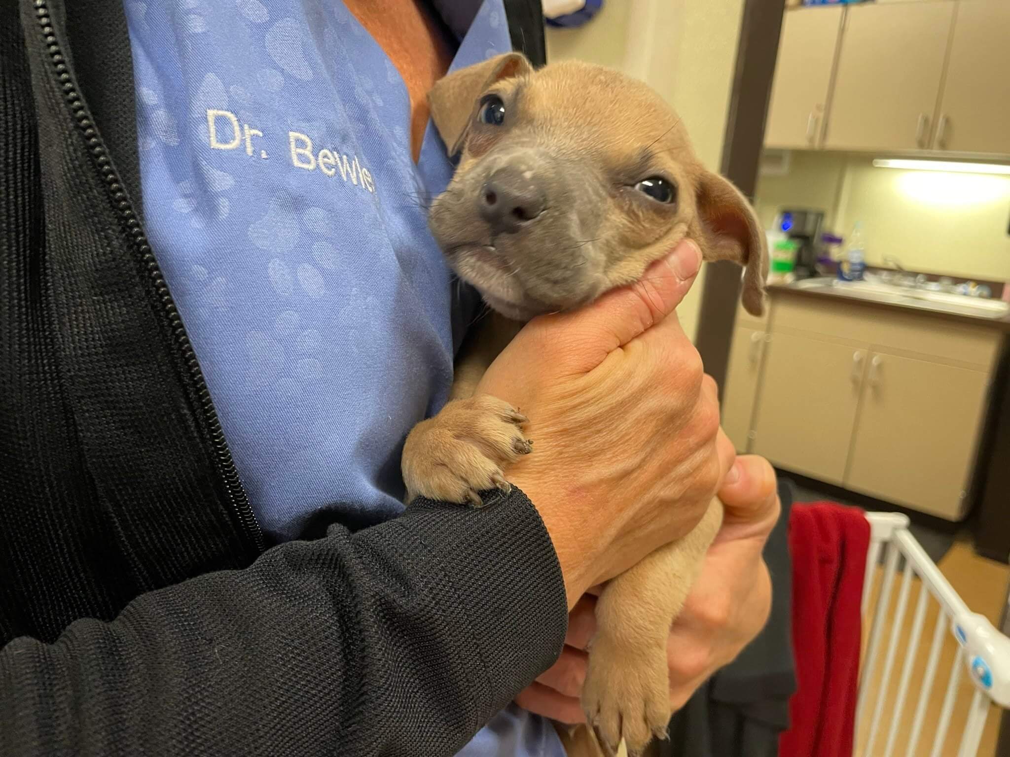 For the last several days, the puppy stayed in an emergency hospital receiving 24-hour care, and on Tuesday was able to leave and has been in the veterinary ward of the Kentucky Humane Society receiving the care he needs from the staff. He is still very underweight and continues to test positive for a variety of intestinal parasite that are making it difficult for him to gain weight.