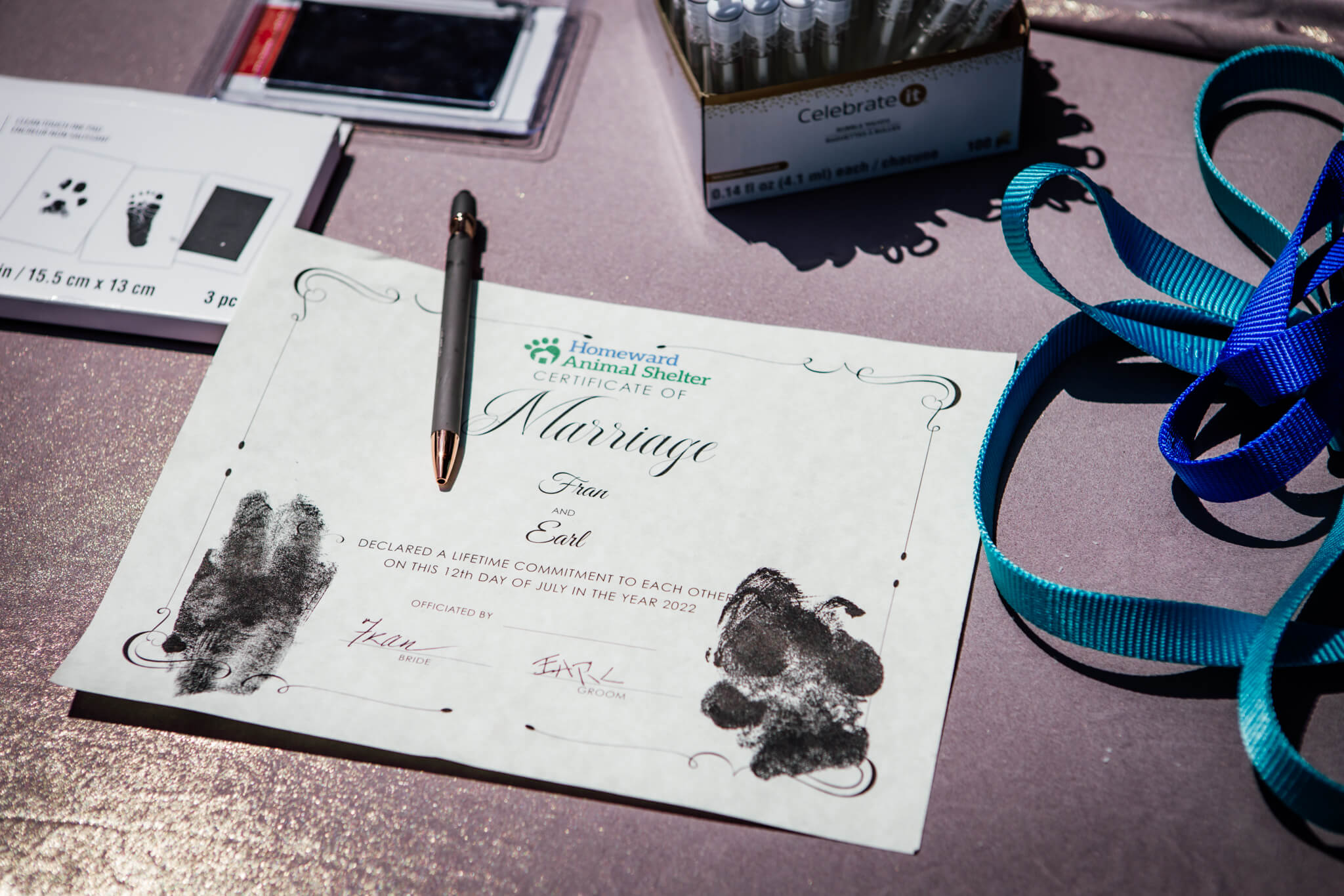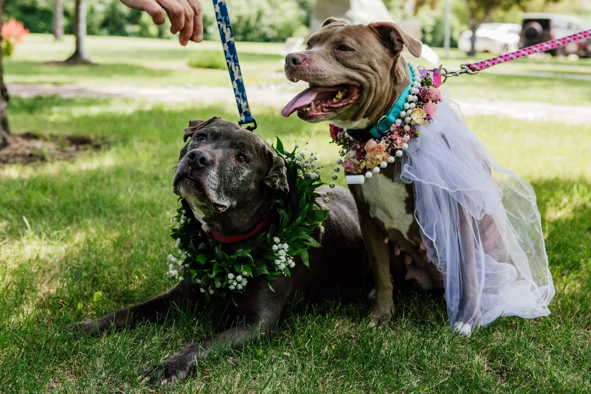 Labeled as the “pup-tuals,” the ceremony took place on Tuesday at the Northern Plains Botanic Garden Society in Fargo – the couple dressed in usual bride and groom attire. And just to be sure everything was “legal beagle” (sort of), a marriage certificate with their paw prints was issued.