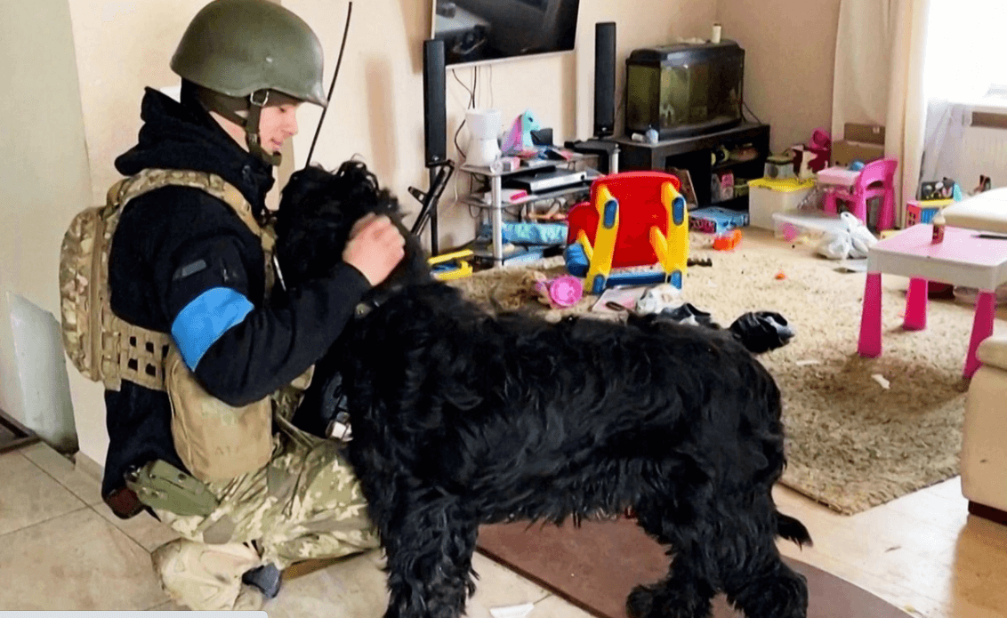 Ukrainian soldiers rescued an abandoned dog in an area that was reclaimed from Russian forces. The soldiers found the black, shaggy-hair pooch in an apartment building while inspecting abandoned homes on the frontline near Ukraine’s capital of Kyiv, the BBC reported. When the soldier played a toy music box, the dog came out to meet him happily wagging his tail seemingly glad for someone coming to help him.