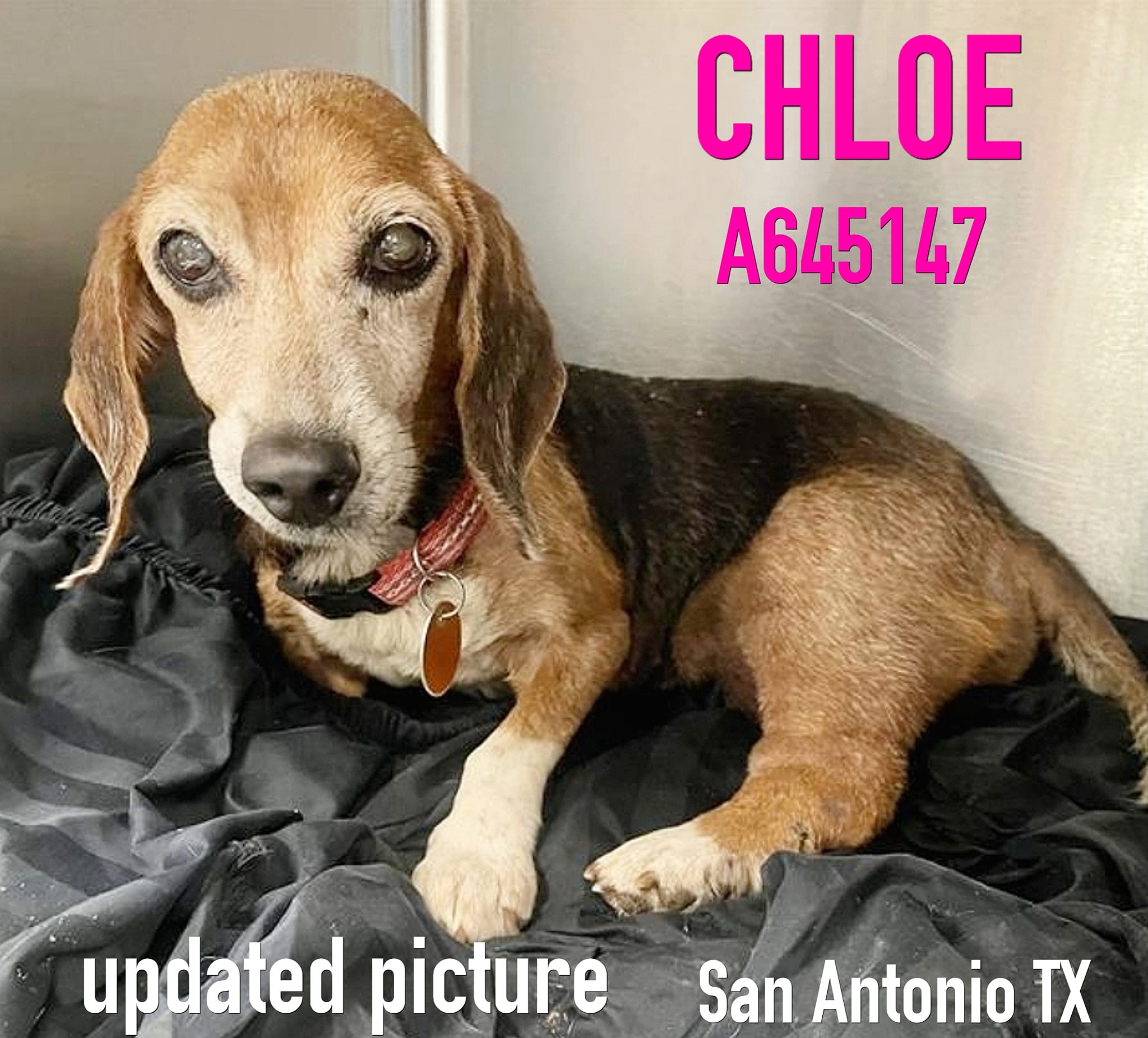 Chloe had been one of the senior dogs surrendered to the county shelter in San Antonio, Texas. At a time when she needed her owners the most, they dumped her at the shelter; at 16-years-old.