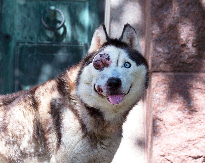Photographs of an abandoned husky chained up in the woods with severe injuries near Ironton, Missouri, went viral on social media this week. A number of versions about the situation had been circulating including one story claiming the dog had been euthanized.