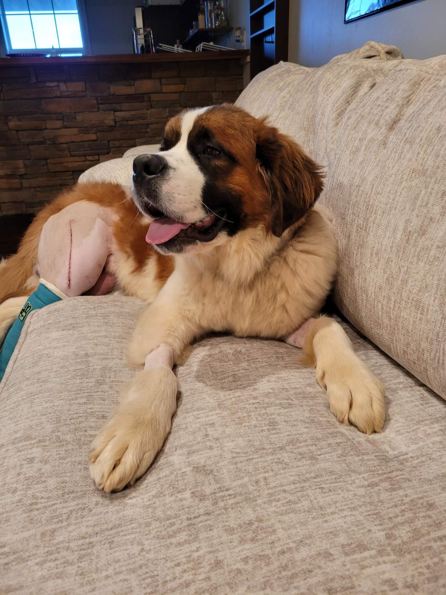 The Kentucky Humane Society stepped up to help the dog after his family never showed up, and he was released from the mandatory stray hold at Louisville Metro Animal Services. The 100-pound St. Bernard, now named Ludwig Van Beethoven, arrived seemingly in a lot of pain. After x-rays were taken, it was found he suffered from a broken femur and three broken metacarpal bones that required surgical repair.
