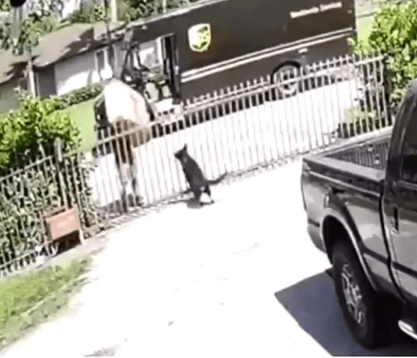 In Miami, a family’s surveillance camera captured the disturbing incident of a UPS driver dropping a large box over a fence directly on top of the family’s German shepherd.