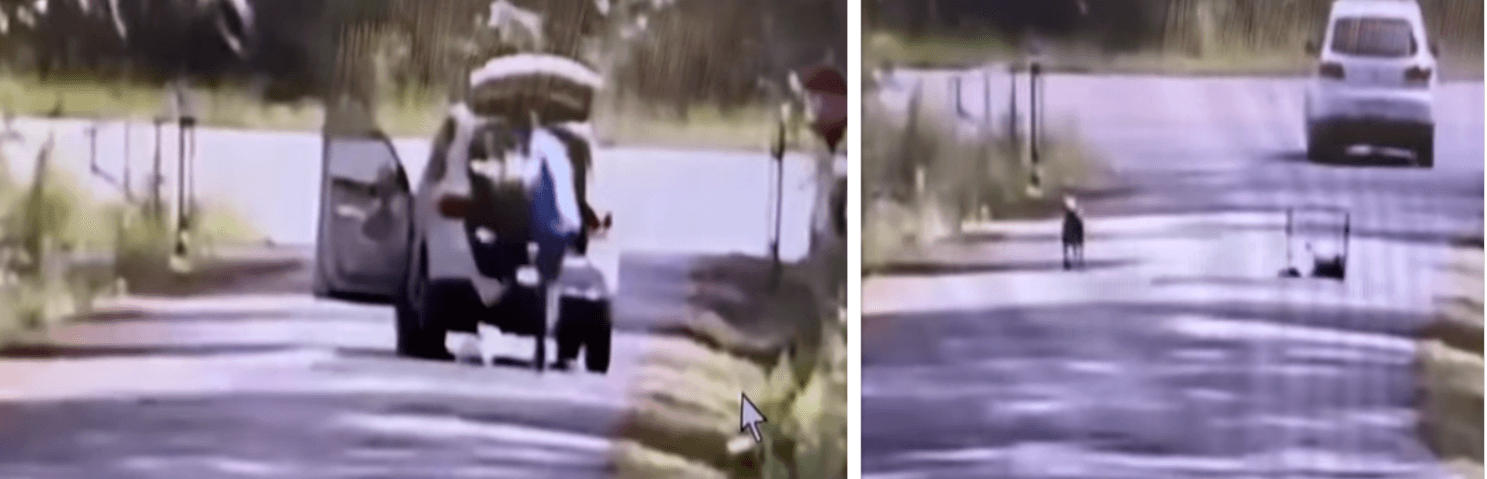The distraught mother dog circled her puppies for 10 minutes before running away – at times, frighteningly near traffic. Thankfully, the abandoned mother and litter of pups were spotted by shelter staff, and they rushed to save them. The shelter writes:
