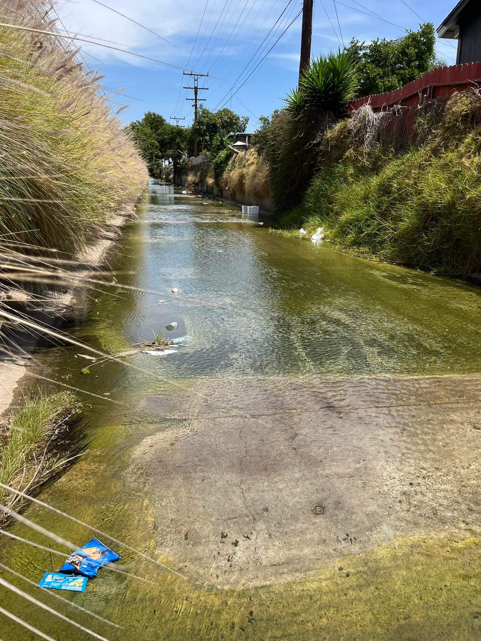 Well … it was dangerous for her. So I figured out a way to climb down there. Had to jump over a fence and onto a ladder that led down to the canal. The water was so smelly; swamp like. The water was high enough to cover my ankles.
