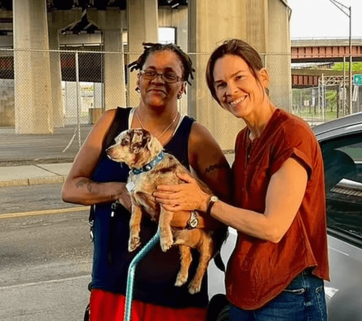Hilary is no stranger to dog rescue. Her foundation, The Hilaroo, “is the brainchild of two-time Oscar winner Hilary Swank, whose soul was so tenderly touched by a little dog with a big heart named Karoo.” Her program aims at matching abandoned dogs with children.
