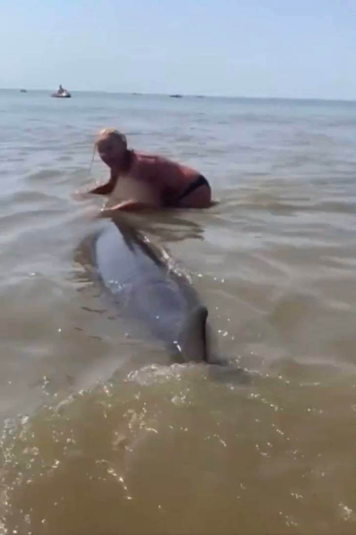 A lost dolphin trying to swim his way back to the sea in the Netherlands was accosted by a woman who repeatedly trying to mount the animal to go for a ride. Bathers in the area tried to stop her.