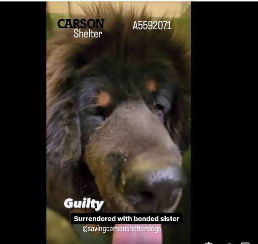 Gorgeous and Guilty were surrendered to the Carson Animal Shelter on November 1, 2023 due to landlord issues. If they are unable to be reunited with their owner by November 8, they will be available for adoption.