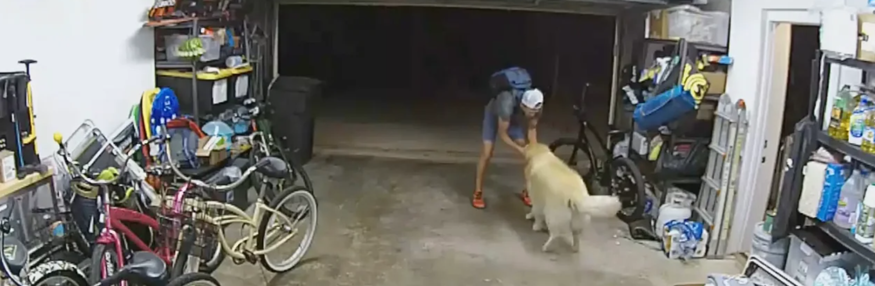 A suspected thief in San Diego, California stole a bike from a resident’s garage, and surveillance video showed how the burglar made friends with the family dog; the most adorable Golden Retriever at the same time.