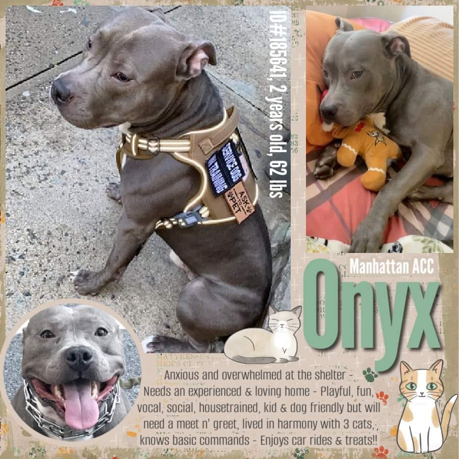 Onyx is described as doing well with cats and other dogs. Everyone is praying that Onyx gets a last minute reprieve, and his life is spared.