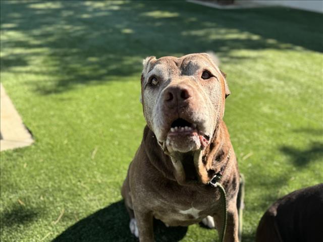Sadly, it’s not as if the seniors had been well-cared-for and possibly their owner had encountered some bad times. Both dogs have bad teeth, and one of the dogs borders on obesity. Both have calluses that come from lying on concrete day and night, and both dogs have limited vision -likely just a result of old age.