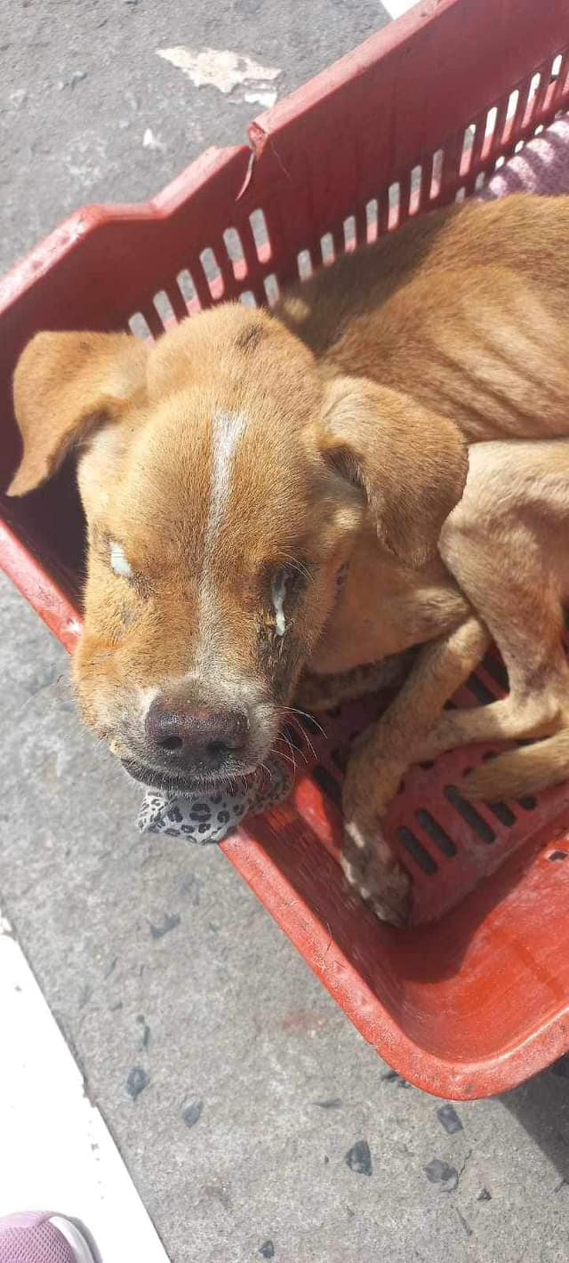 No eyes. No teeth. How is he alive? A skeletal boy is walking blindly through streets in search of food that he can’t even eat. This boy is living in a dark hell and one that he can’t even maneuver through visibly. He urgently needs rescue and foster! He is not going to survive like this!