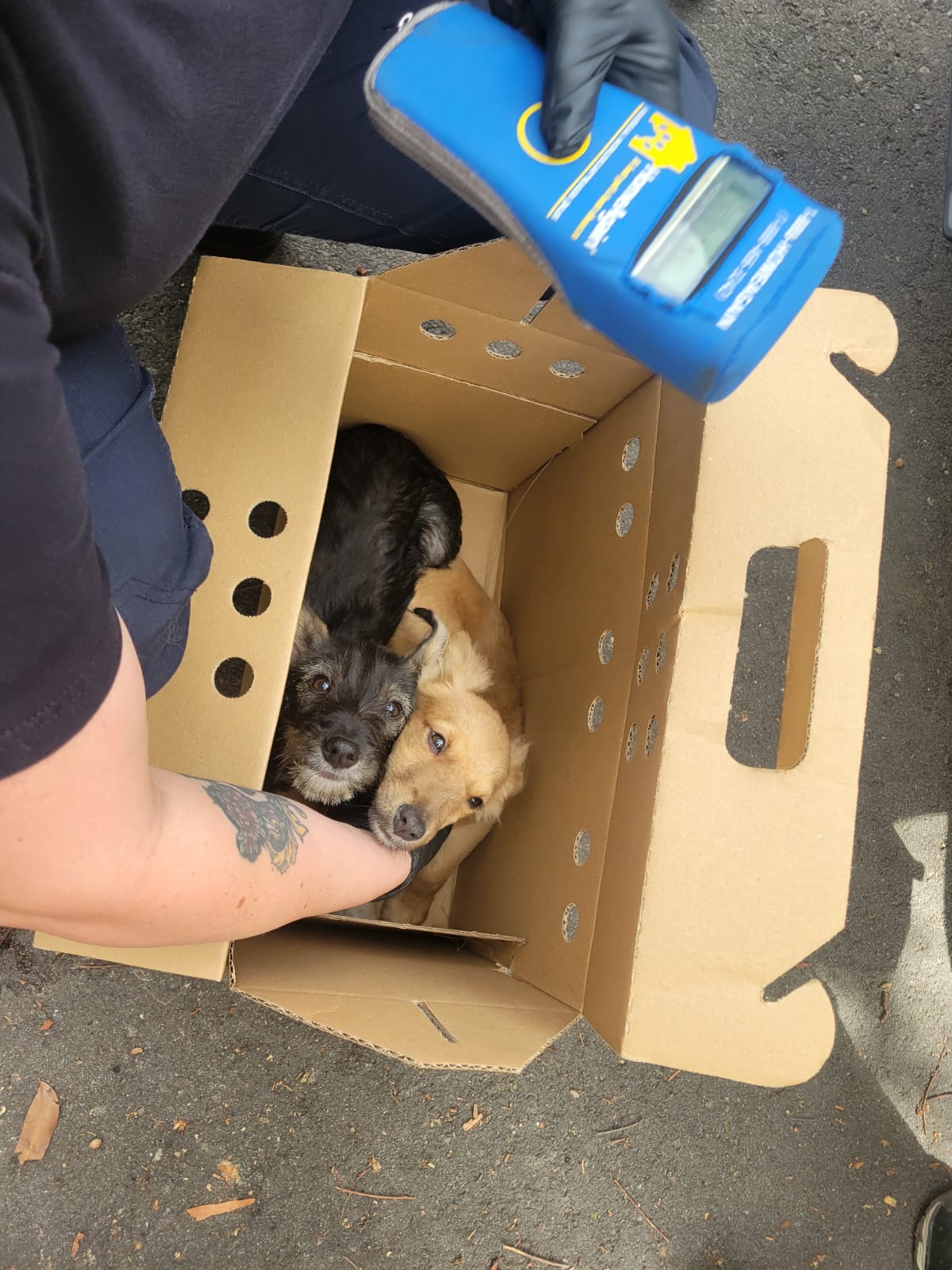 The puppies were not microchipped and are currently on stray hold for the next three days awaiting the arrival of their owner.