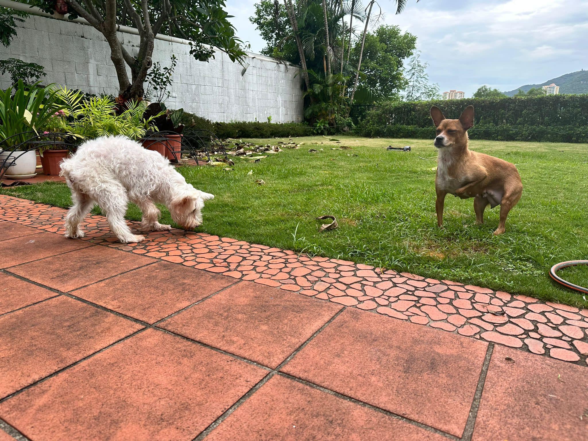 Weeks later – even more good news. Preeti Sharma, a mom of two, offered to foster Chloe and two of her puppies (the other one had already been adopted) and Chloe would join her family and another rescued dog – Ivy. Now Ivy is a senior dog with needs also – deaf, partially blind, has epilepsy and cancer, but to see these two get along is incredible.