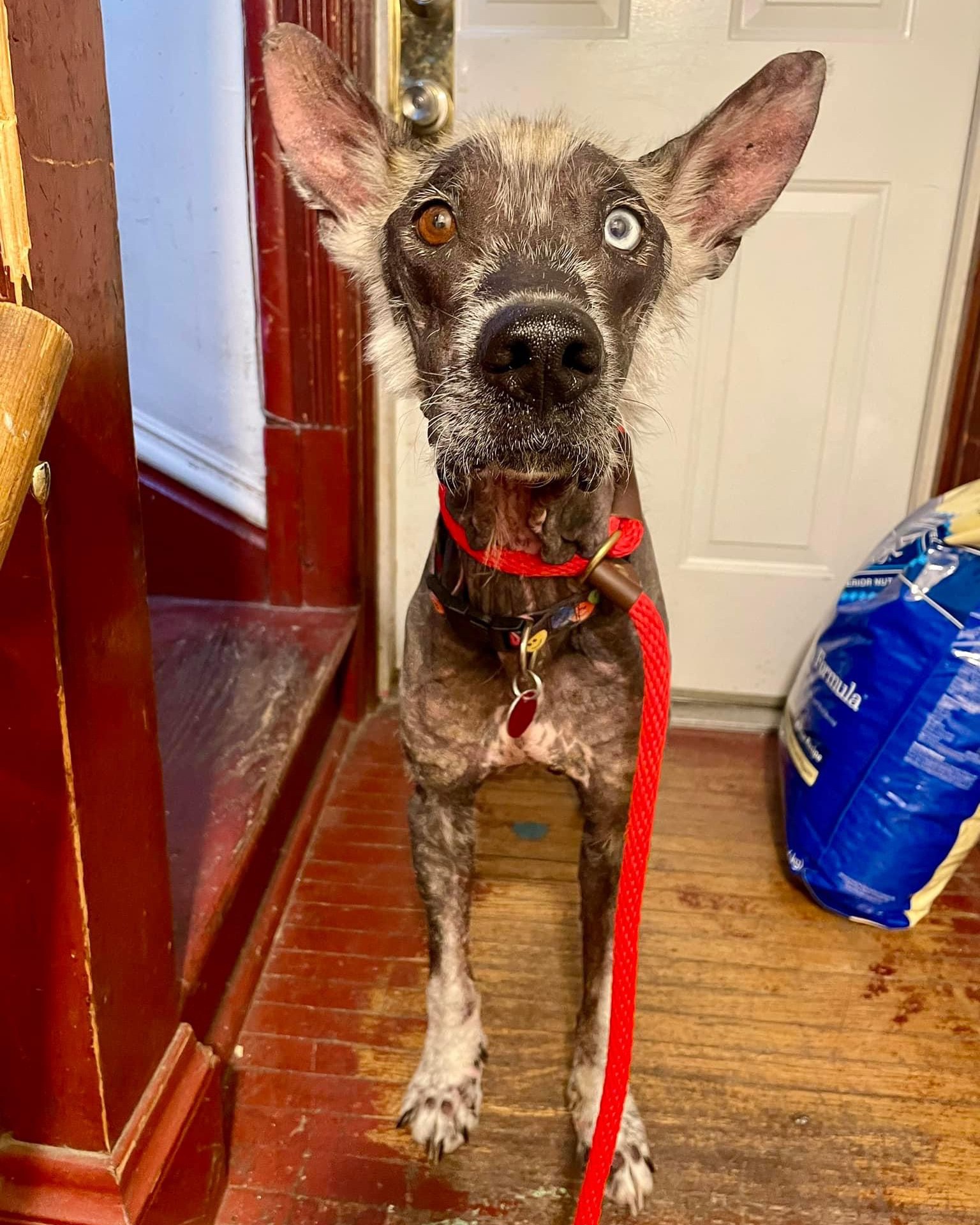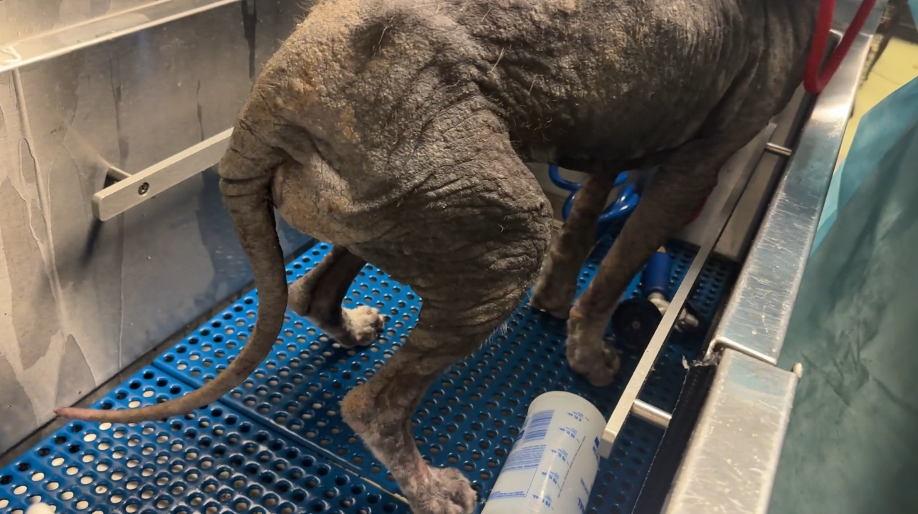 Stray Rescue of St. Louis. The dog, dubbed Lycan had lost every hair on his body; his skin was so irritated and raw it looked as if it had turned to stone.