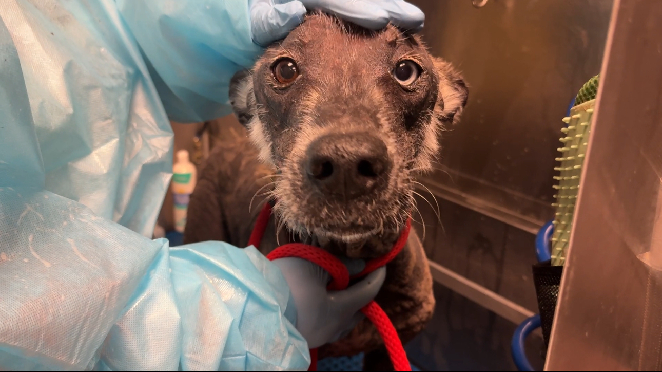 Rescuers immediately began to care for Lycan, who cried out in pain every time he was touched. He had been diagnosed as suffering from scabies, also known as sarcoptic mange which is a highly contagious skin disease caused by the mite “Sarcoptes scabiei var.canis”. The mites burrow into the dog’s skin causing intense itching and pain. Scabies can be transmitted to humans and other animals through bedding or grooming equipment.