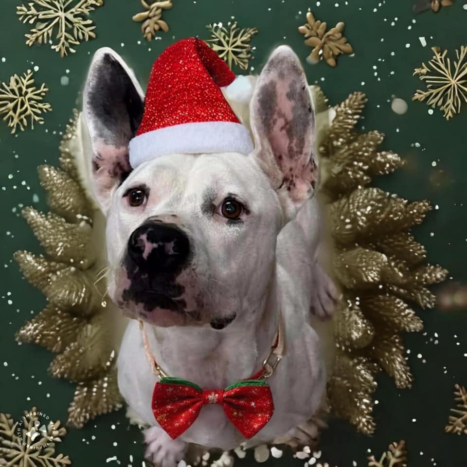 She was so confused. Wait, you’re here for …me? Yes, we are here for you. You matter, you are beautiful, you deserve a family and a couch and toys and treats and a Christmas sweater.