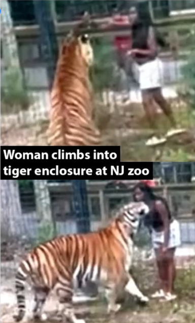 According to the Bridgeton Police Department, Zyar J. Dennis, 24, jumped over a fence and approached the enclosure of the Bengal tiger – reaching out into the tiger’s cage, nearly getting bitten, but pulling her arm and hand out just in time as the animal became aggressive.