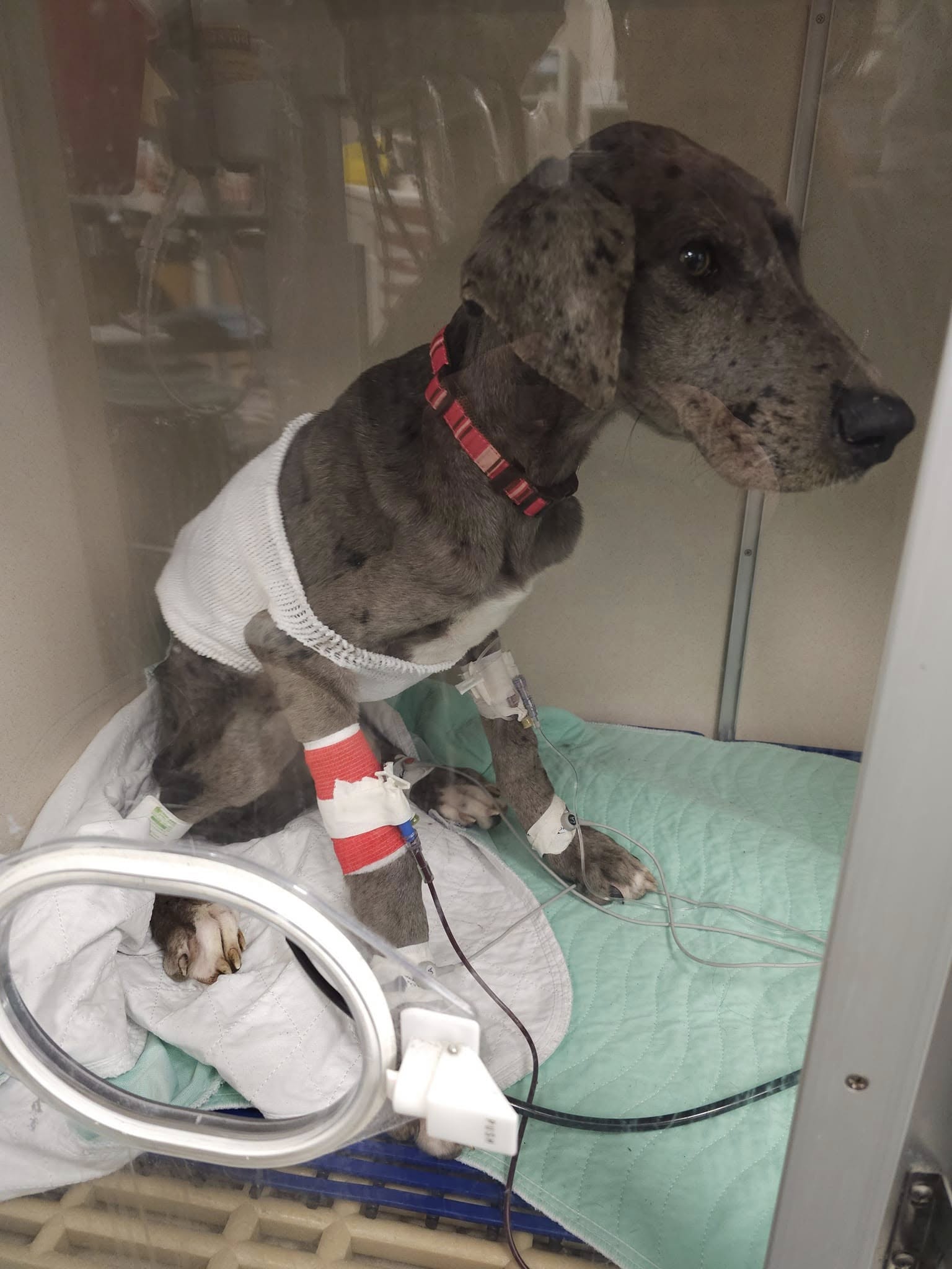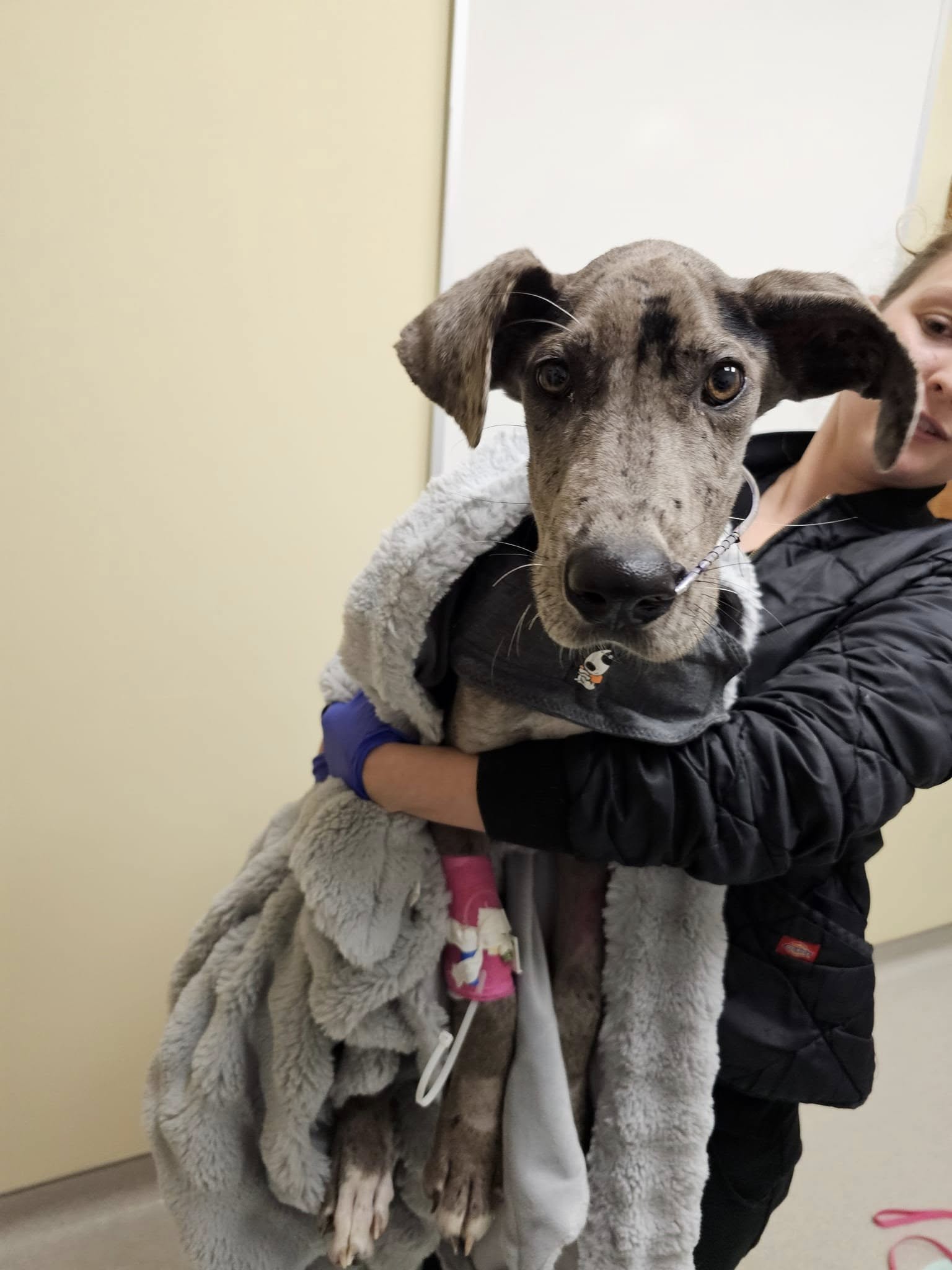 Teagan suffered a tear in her diaphragm and was rushed to the North Carolina State Vet Emergency Hospital where she underwent surgery; she would not have survived another day or two had the problem been left untreated. As of November 25, Teagan has been eating and receiving medications orally.