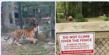 According to the report from the Bridgeton Police Department, the woman climbed over a barrier surrounding the tiger enclosure and put her hand through the metal fence and started to entice the tiger; nearly getting bitten. Police want to speak to the woman and released the video on Tuesday. It is not clear when the incident actually occurred.